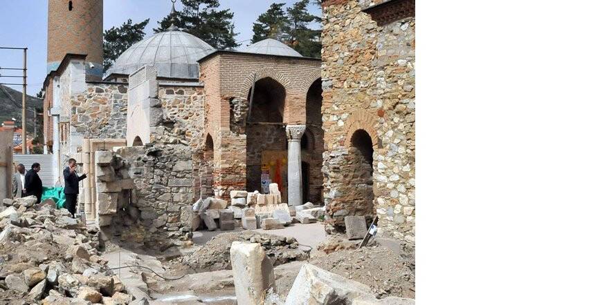 Türbenin sokağa bakan ön kısmı tamamen yıkılmış vaziyette iken, kalan iki sıra restorasyonda ölçü kolaylığı sağladığı da bir gerçek. 1941-44 yıllarında yapılan onarımlarda eserin tamamen yok olmasının önüne geçilirken, 1965-66 yıllarında Vakıflar Genel Müdürlüğü’nün onarım programı ile mescid ve türbe ile bu bölümdeki revaklar da yeniden gözden geçirildi. 1972-74’de onarımlar tekrar yürütüldü.