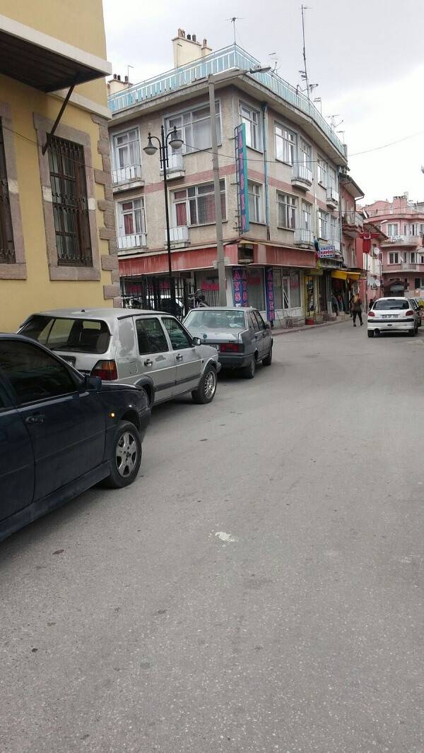 İşte burası daracık eski bir Konya Sokağı. Taaa Aladdin Caddesi yüzünden artık kilitleniyor. Yol tekyönlü değil. Gidişli gelişli. Karşı karşıya geldiğiniz zaman bittiniz. Çünkü dar yol sağlı sollu uygunsuz parklar ile dolu.