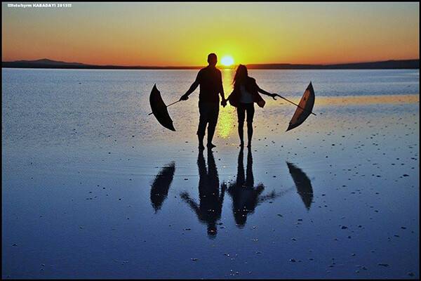 Akşam saatleriydi gün batımına az kalmıştı, geziye katılan arkadaşımızdan birisi ‘çizmesi olan varsa ayağına giysin, çünkü tuzlu suda yürüyeceğiz’ dedi. Benim çizmem yoktu yalın ayak girdim Tuz Gölüne. O da ne ayaklarım o tuzlu suda yürürken öyle rahatlıyordu ki, tuzlu suyun etkisi olsa gerek, sanki derinden derine vücudunuzda bir hafifleme hissediyorsunuz. Fotoğraf çekmeyi bir kenara bırakıp öylece yalın ayak suda bekleyesiniz geliyor. Bu arada güneş batmaya yaklaşmış, ortalığı güzel bir kızıllık kaplamıştı. Eline makineyi alan gelmiş, tuz gölüne. Bu güzel gün batımı manzarasını kimse kaçırmak istemiyor gibiydi. Arkadaşlarımızdan bazıları gölün üzerinde bizlere model oluşturuyor, öyle güzel kareler yakalıyorduk ki anlatamam. Doğrusu arkadaşımız bana: ‘Tuz Gölüne fotoğraf çekmeye gidelim’ dediğinde bayağı da haklıymış. Çünkü ben iddia ediyorum ki ‘gün batımı fotoğraf çekimi, Tuz Gölünde, başka yerlerdeki gün batımı fotoğraflarından daha da etkili ve güzel oluyor. Hele de Tuz Gölünün suyuna modellerin ve güneşin kızıllıkta batarken yansıması size doyumsuz bir haz bir o kadarda seyir keyfi veriyor. Keyfiniz ve güzellikleriniz daim olsun… Saygılarımla.