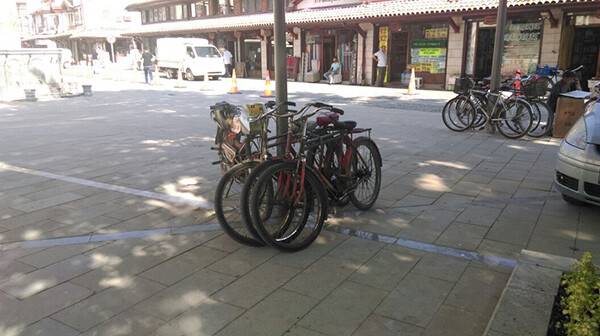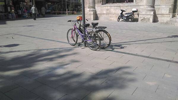 Böylesine önemli Konya tarihinin merkezi yerinde ne yazık ki bölge esnaf için, çarşıya gelen vatandaş için ya da camiye namaz kılmak için gelen cemaatin bisikletini park edebileceği bir tek yer yok.