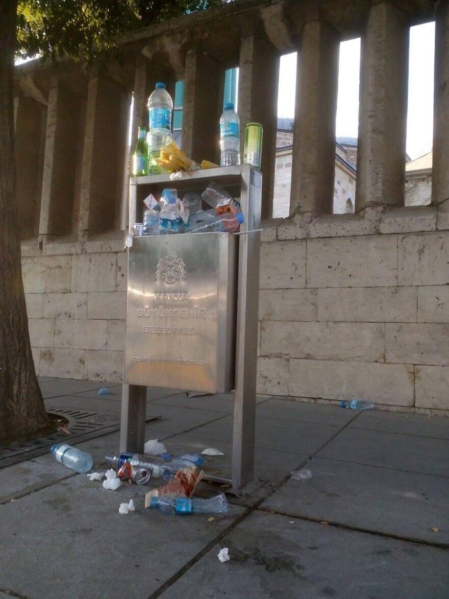 Ama fotoğraf gerçek bir fotoğraf, fotoğrafı gönderen dostumuzda samimi insan olduğuna göre durumu şöyle gördüm. Türbe bölgesinde çöp bidonu olarak daha fazla ve orijinal çöp kutuları çalışması yapılabilir.