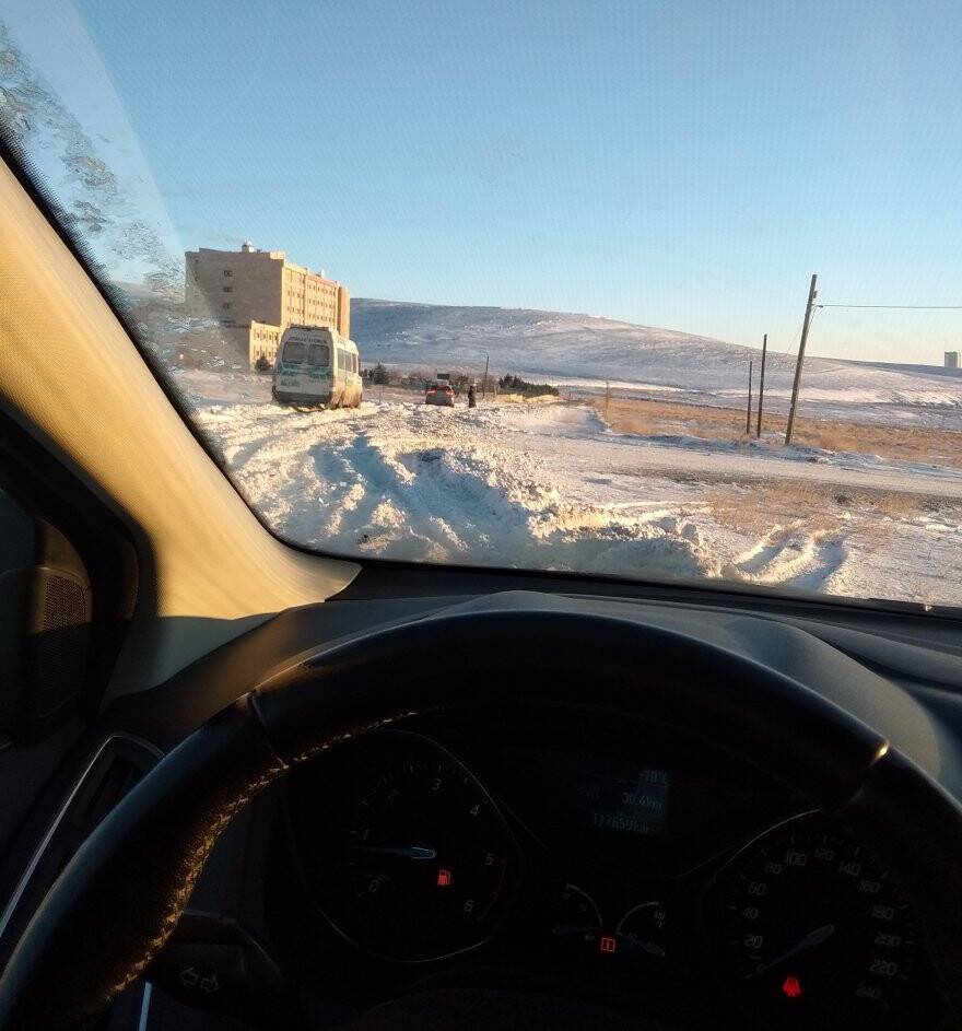 “Dün size mail atmıştım. Bugün de şükür yine çöktük yola. Belediyemizden Allah razı olsun. Yolun son durumu bu. Dolmuşlar bile çöktü. Şu yolu geceden açmak çok mu zor? Bin türlü felçli, engelli hasta fizik tedavi almak için bu hastaneye gidiyor. Sadece yazıklar olsun diyorum. Hastanenin mesai başlangıç saati sabah 8. Sayın belediyemiz gibi öğlen değil. Aslanlar öğlen gelir bu yolu açar artık. Sadece yazıklar olsun diyorum. 5 senedir her kış böyle. Yolunu açmayacaksanız dağın başına hastane yapmayın kardeşim.”