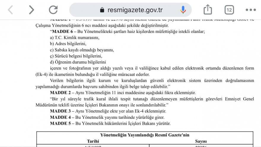 “Bir yıl süreyle trafik kural ihlali tutanağı düzenlemeyen müfettişlerin görevleri Emniyet Genel Müdürlüğünün teklifi üzerine İçişleri Bakanlığının onayı ile sonlandırılabilir.”