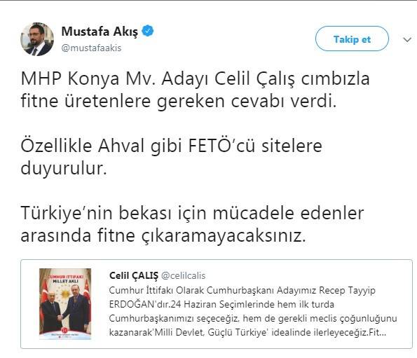 Ve bu tweet ile durumu Cumhurbaşkanı Baş Danışmanı Mustafa Akış attığı tweetler ile destekler.