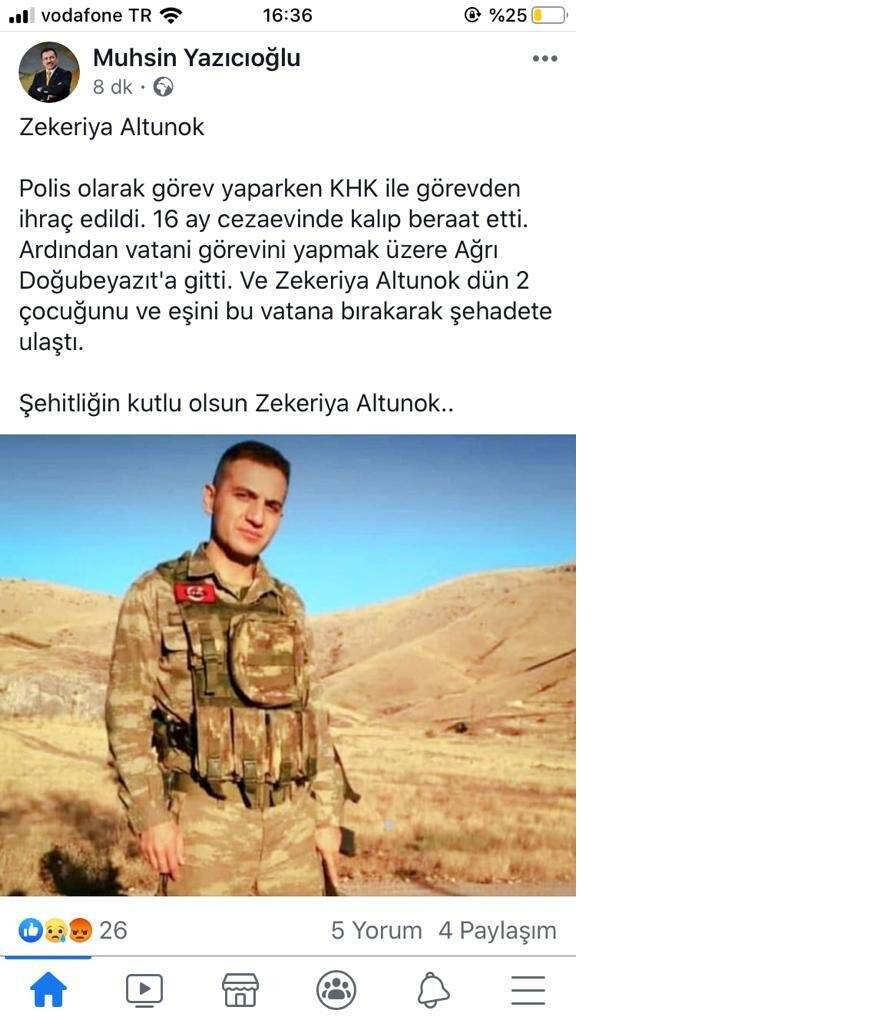 Evet bu şehidimiz Zekeriya Altunok nur içinde yatsın inşallah. Şehitlik mertebesine ulaşmadan FETÖ’cü damgası ile cezaevinde yaşarken ailesinin yaşadığı ıstırabı Cenab-ı Allah’ım kimseye yaşatmasın. Ama bu olay sadece bir kötü örnek olmayabilir değil mi?