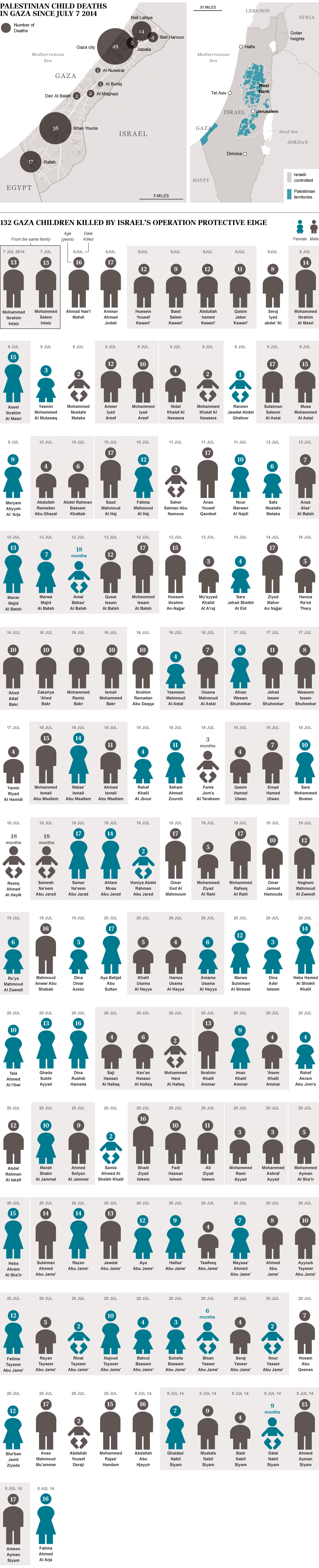 İngiliz Daily Telegraph gazetesi 7 Temmuz'dan bu yana Gazze'de İsrail tarafından öldürülen çocukların yaş ve isimlerini toparladı.
