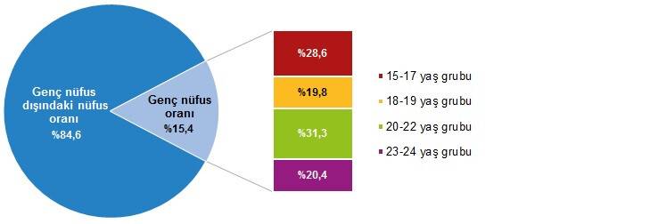 Genç nüfusun %31,3'ünün 20-22 yaş grubunda yer aldığı görüldü