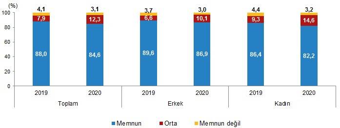 Kaynak: TÜİK, Yaşam Memnuniyeti Araştırması, 2019, 2020