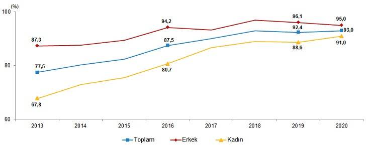 Kaynak: TÜİK, Hanehalkı Bilişim Teknolojileri Kullanım Araştırması, 2013-2020