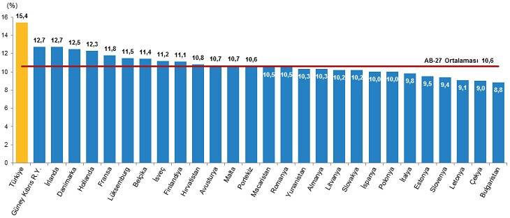 Türkiye'nin genç nüfus oranının %15,4 ile Avrupa Birliği üyesi 27 ülkenin genç nüfus oranlarından daha yüksek olduğu görüldü. Avrupa Birliği üyesi 27 ülkenin genç nüfus oranları incelendiğinde, 2020 yılında en yüksek genç nüfus oranına sahip olan ülkelerin sırasıyla %12,7 ile Güney Kıbrıs Rum Yönetimi ve İrlanda, %12,5 ile Danimarka ve %12,3 ile Hollanda olduğu, en düşük genç nüfus oranına sahip olan ülkelerin ise sırasıyla %8,8 ile Bulgaristan, %9,0 ile Çekya ve %9,1 ile Letonya olduğu görüldü.
