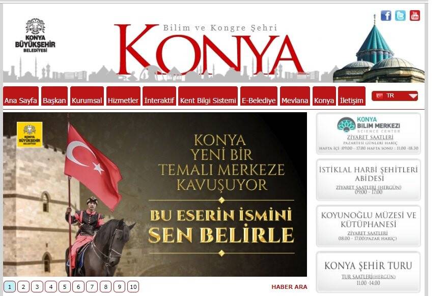 Burada hem abimize hem de yol gösterici olalım. Büyükşehir’in sitesinde ana sayfada fotoğrafta da göreceğiniz üzere “Konya Şehir Turu” sekmesi var. Bu sayfayı ziyaret ettiğinizde de karşınızda, “HALK TURU (ŞEHİR TURU)-Konya Büyükşehir Belediyesi tarafından organize edilen ve şehrimizi tanımak amacı ile üstü açık çift katlı otobüsler ile yapılan şehir turları tüm halkımızın katılabileceği bir etkinliktir. Turumuz hafta içi saat 11.00, 14.00’da hafta sonu 11.00, 14.00’da Mevlana Müzesi önünde başlamaktadır. Dini bayramlar hariç tüm resmi tatillerde turlarımız devam etmektedir. Ücretler Elkart ya da temassız bankacılık kartları ile tahsil edilmektedir. Tur ücreti, şehir içi toplu ulaşım ücretinin 2 katıdır. Şehir turu rehber eşliğinde indirme yapmadan Konya’nın önemli yerlerinin anlatıldığı panoramik bir turdur. Başlıca gezi mekânları Mevlana Müzesi, Alaaddin Tepesi, Nalçacı Caddesi, Akyokuş Tepesi ve Sille'dir. Otobüslerimizin üstü açık olması nedeni ile hava şartlarına bağlı beklenmeyen iptaller yaşana bilmektedir. Konya Sanat Kültür ve Spor Faaliyetleri A.Ş / 0332 355 55 52 / DAHİLİ: 8528-8529” yazısı mevcut.