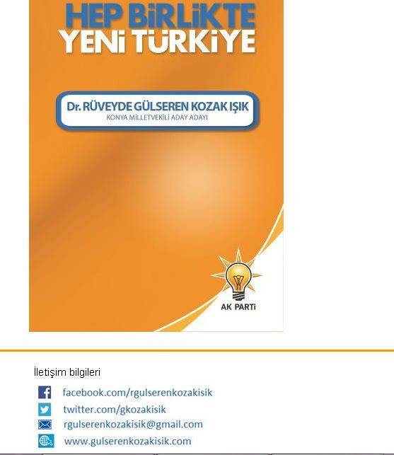 AK PARTİ internet sitesinde AKKADRO başlığını, en altta 25. Dönem Milletvekili Aday Listesi başlığını, karşınıza çıkan il bazında arama motorundan Konya’yı ve onuncu sıradan Rüveyde Gülseren IŞIK ismini seçin. Hatta hiç uğraşmayın ben Rüveyde Hanım ile ilgili tanıtımı kopyaladım ve yapıştırdım. İşte Rüveyde Gülseren IŞIK, “Konya’nın Meram ilçesinde doğdu. Boğaziçi Üniversitesi Psikoloji ve Sosyoloji Bölümlerinden mezun oldu. Minnesota Üniversitesinde Sosyoloji dalında doktora yaptı.”.