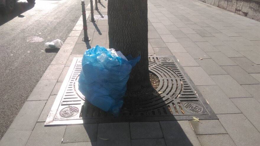 Oradan gelip geçen insan bu çöp torbalarını görse hemen belediyeye kızar değil mi?